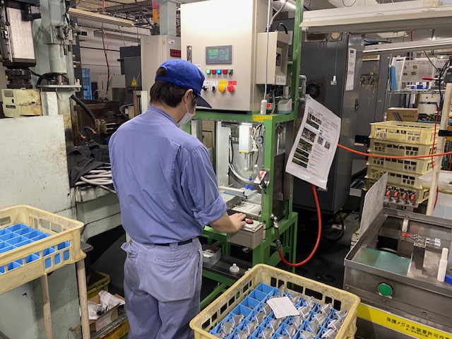 リーク検査工程では、完成したアルミダイカスト製品が気密性を保持しているかを厳密にチェックしています。