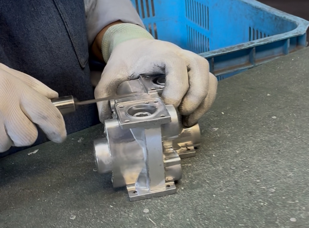 まずはグラインダーや専用工具を用いて、大きく目立つバリを取り除きます。この段階でおおまかな形状を整え、後工程での仕上げを効率的に進められるようにします。