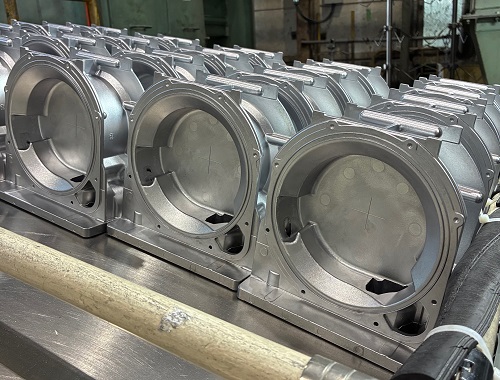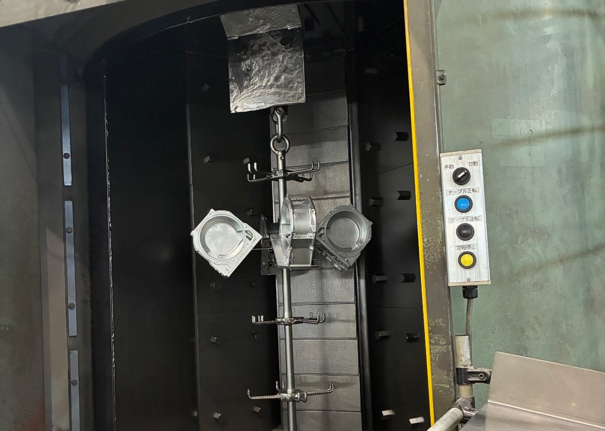ショットブラスト加工は、鋳造品の表面に小さな金属粒を高速で吹き付け、付着した砂や酸化物を取り除く仕上げ工程です。これにより表面が均一に整えられ、後工程での塗装や機械加工の精度が安定します。また、微細な凹凸をつけることで製品の見た目も向上し、品質のばらつきを防ぎます。当社では専用のショットブラスト機を使用し、短時間で効率的かつ均一な仕上がりを実現しています。