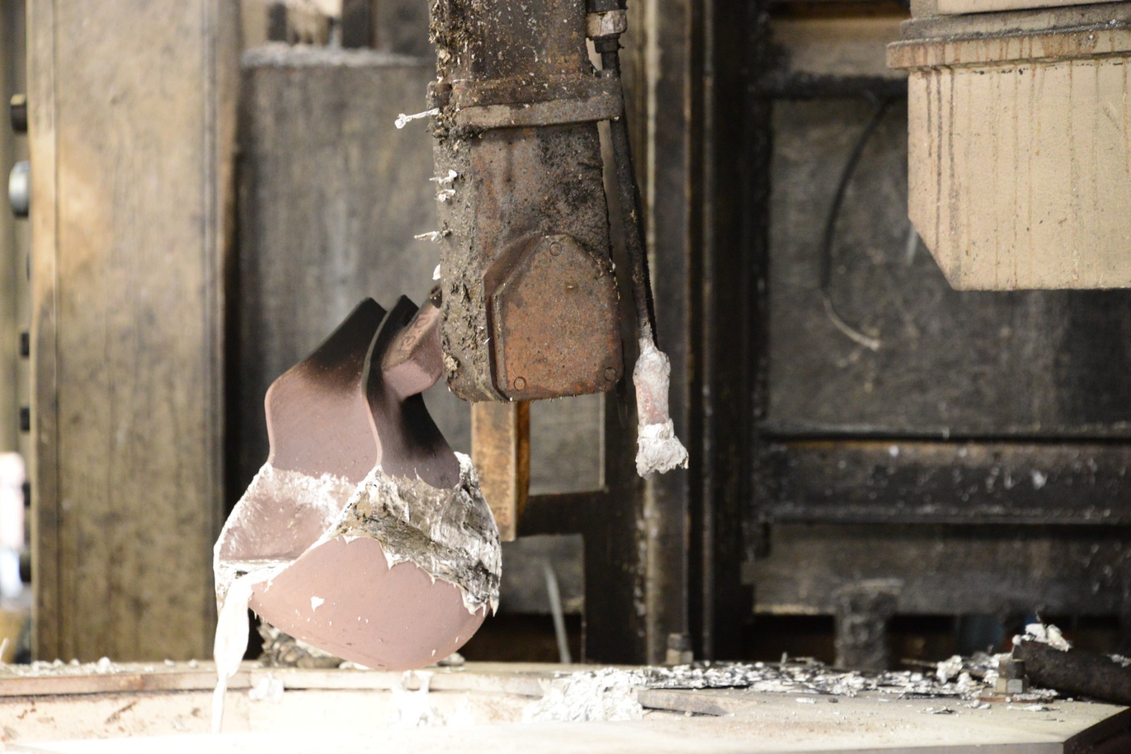 保持炉に蓄えられた溶湯を自動給油装置によりダイカストマシンに注ぎます。
