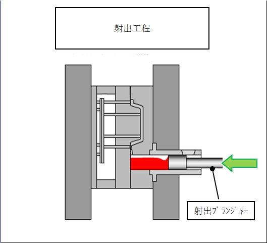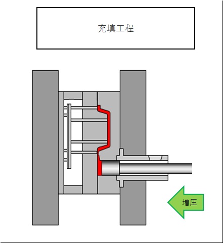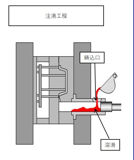 注がれた溶湯は高速・高圧で金型に充填されます。