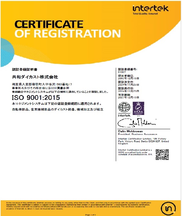 共和ダイカスト株式会社は、ダイカスト製品・サービスの提供を通して、